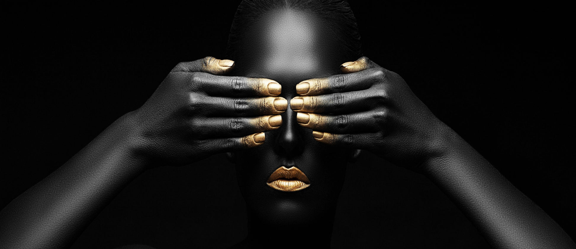 panorama-140 XXL Leinwandbilder inklusive Holzrahmen Goldnägel Nageldesign Beauty Inspiration Fashionista Makeup KunstDerSchönheit StilIkone Gesichtsbedeckung